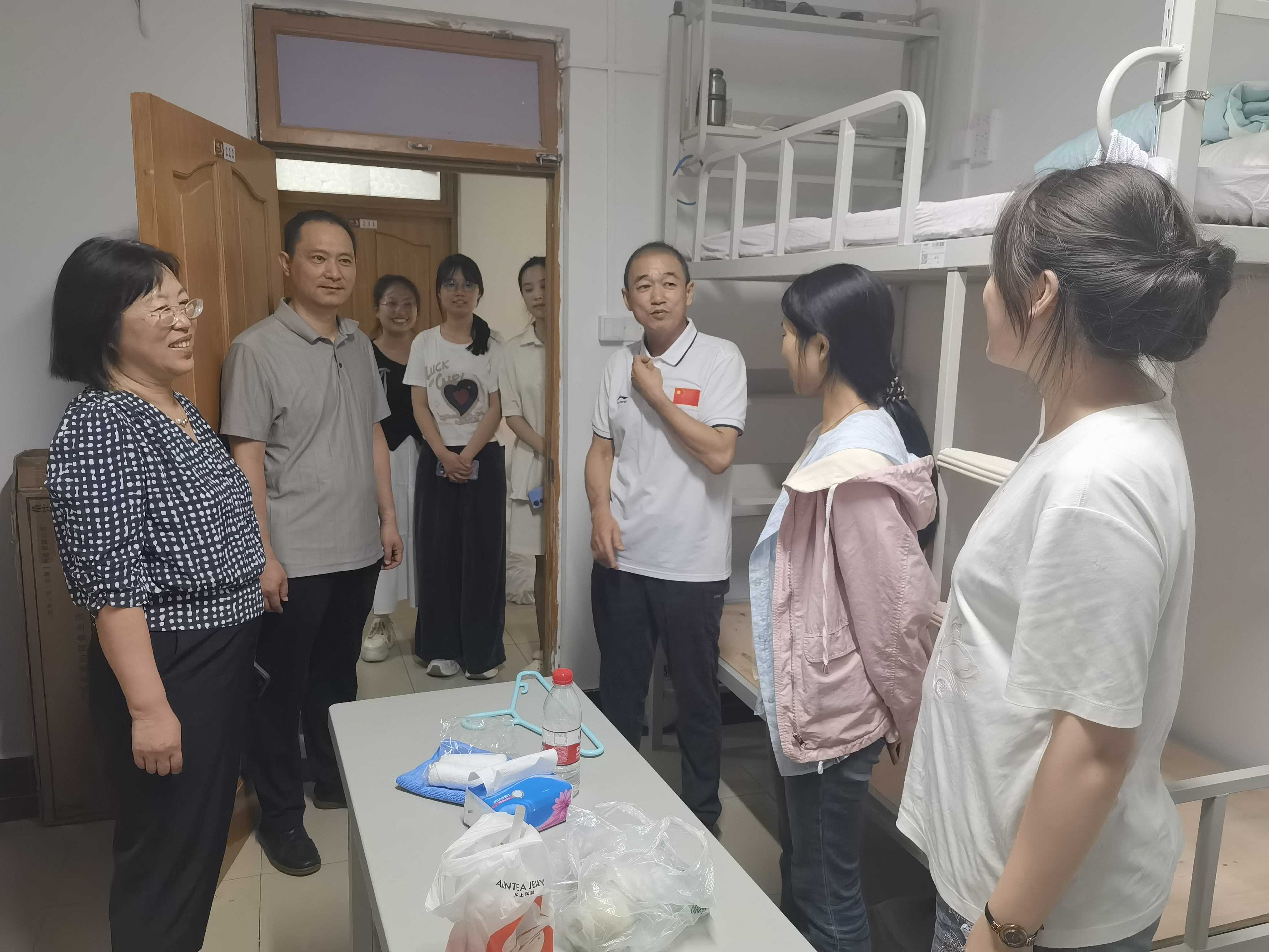 午后阳光正好,学院领导走进新生宿舍,带来“面对面”的关怀。“宿舍住得习惯吗?”“生活用品都备齐了吗?”领导们仔细检查宿舍环境,与新生们亲切交谈,既叮嘱大家要尽快适应集体生活、平衡好学习与生活,也鼓励新生们在法大的平台上深耕专业、追逐法治理想。暖心的问候、实用的建议,让新生们在异乡感受到了“家”的温暖。